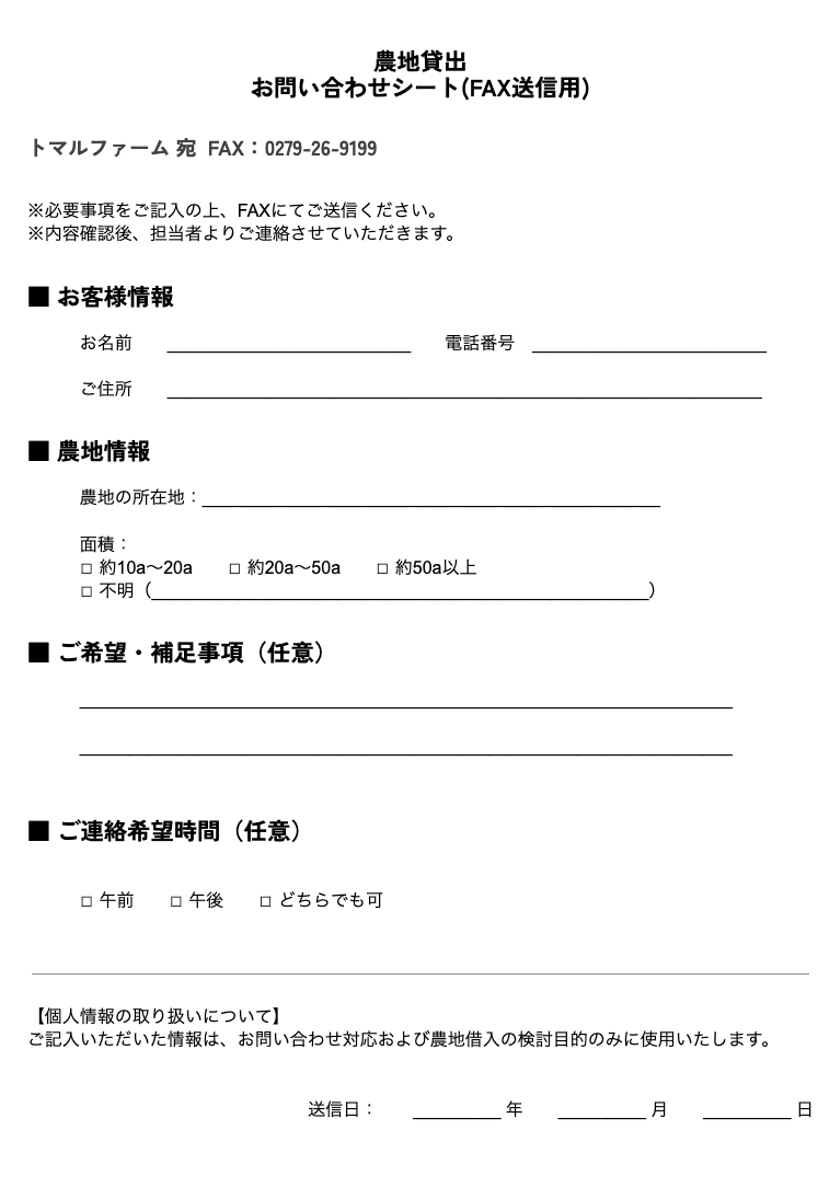 継続的な営農をお約束できない場合など、 お気軽にご相談ください